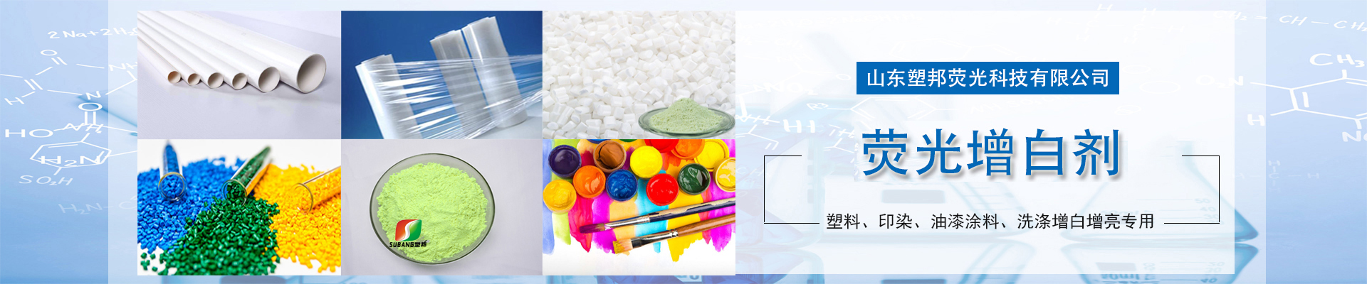 1、聚氯乙烯(PVC): 在硬質或軟質聚氯乙烯中: 增白:0.01-0.05% (10-50g/100KG物料) 透明:0.0001-0.001%(0.1g-1g/100kg物料) 2、聚苯乙烯(PS): 增白:0.001% (1g/100kg 物料) 透明:0.0001-0.001 (0.1-1g/100kg 物料) 3、ABS: 在ABS中加入0.01-0.05%就可以有效地消除原有黃色,達到增白效果。 4、聚烯烴: 聚乙烯和聚丙烯中有良好的增白效果: 透明:0.0005-0.001%(0.5-1g/100kg 物料) 增白:0.005-0.05%(5-50g/100kg 物料)